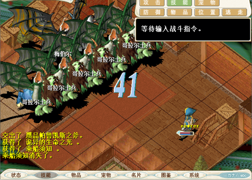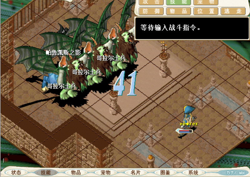 Lv.100哥拉尔士兵(奇美拉)*5,血量13000 邪魔系 60水40地 技能:攻击、防御、石化攻击、混乱攻击