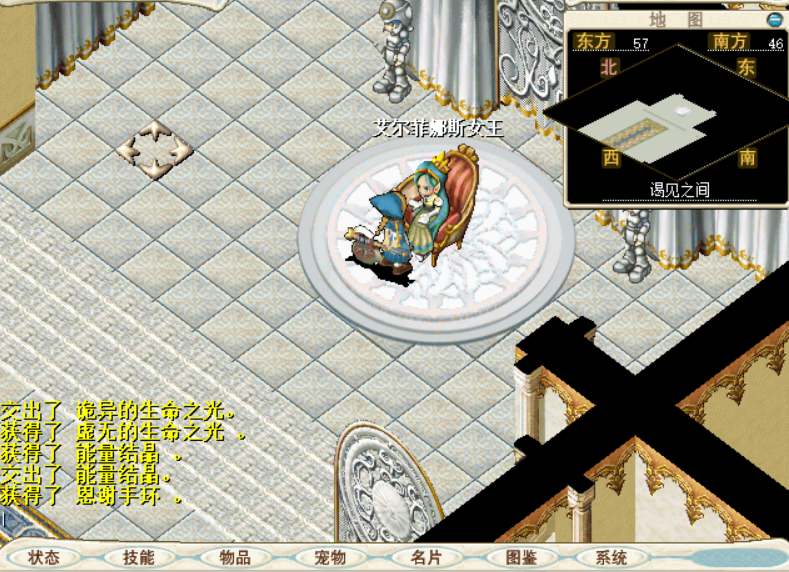 11.前往哥拉尔镇白之宫殿谒见之间与“艾尔菲那斯女王”对话,交出【能量结晶】获得【恩谢手环】,任务完结。