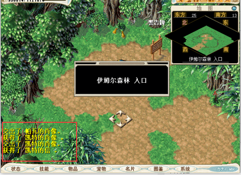 3.前往伊姆尔森林,在第一张固定森林地图与“帕瓦”(27.10)对话,交出【帕瓦的肖像】获得【凯特的肖像】。