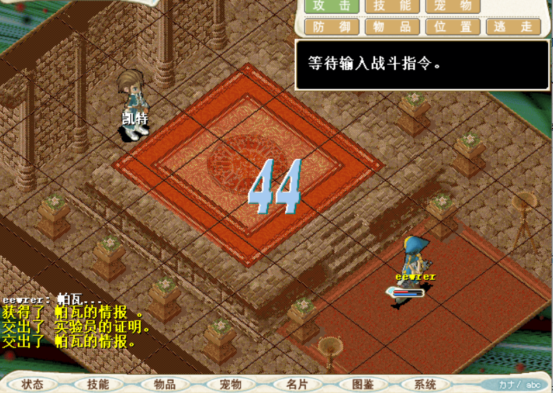Lv.120凯特?,血量50000 邪魔系 50火50水 技能:攻击、防御、超强混乱魔法、乾坤一掷