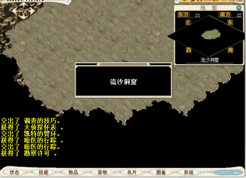 ◆流沙洞窟为随机迷宫,约10层;魔物为骷髅战士、武装骷髅、土蜘蛛、风蜘蛛