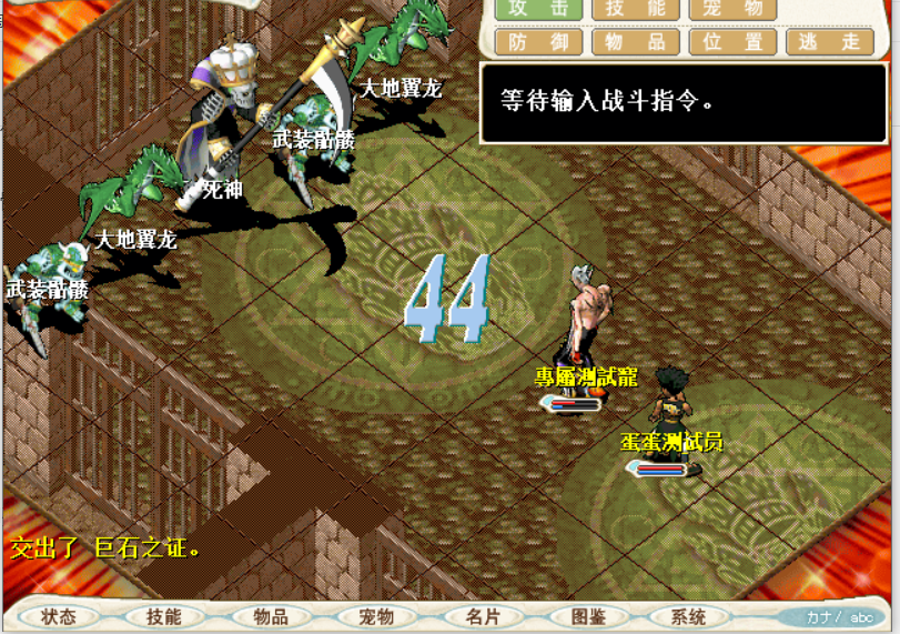 Lv125死神;血量45000 邪魔系 技能:攻击、防御、即死魔法,全体石化魔法