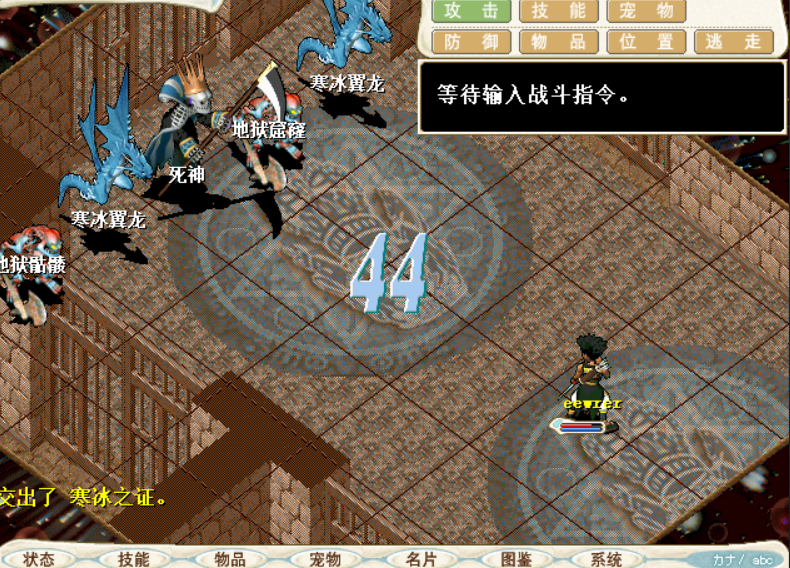 Lv.120地狱骷髅*2,Lv.80寒冰翼龙*2 血量17000 技能:连击、诸刃、圣盾、乾坤