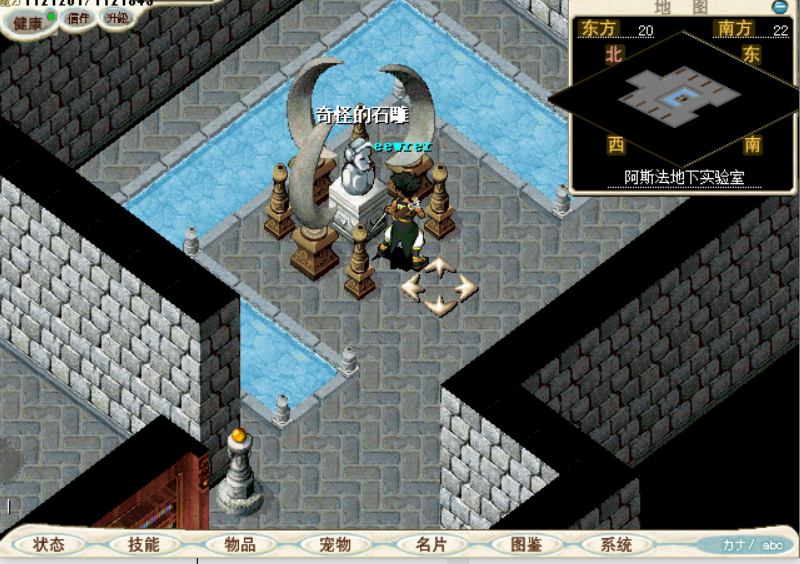 10.战斗胜利后传送至阿斯法地下实验室,调查“奇怪的石雕”(20,22),传送至实验室密道①。