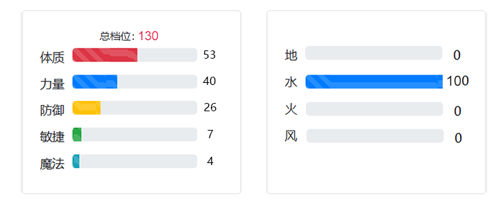出生自带: 必杀/闪躲/命中/反击+10  全抗+10  技能:连击-V