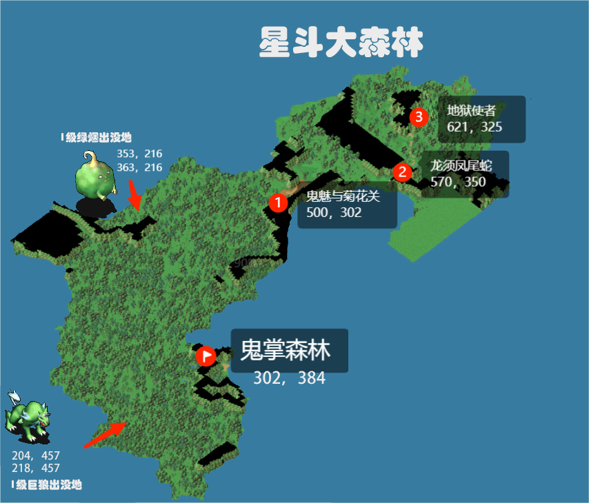 3,来到星斗大森林的【500,302】和菊花关或鬼魅对话,打败后传到后面;