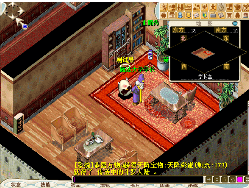 1,来到魔法大学内部(75,93),直走来到礼堂(44,17),从(4,9)进入学长室和“魔法大学学长”对话,得到【传送中的斗罗大陆】